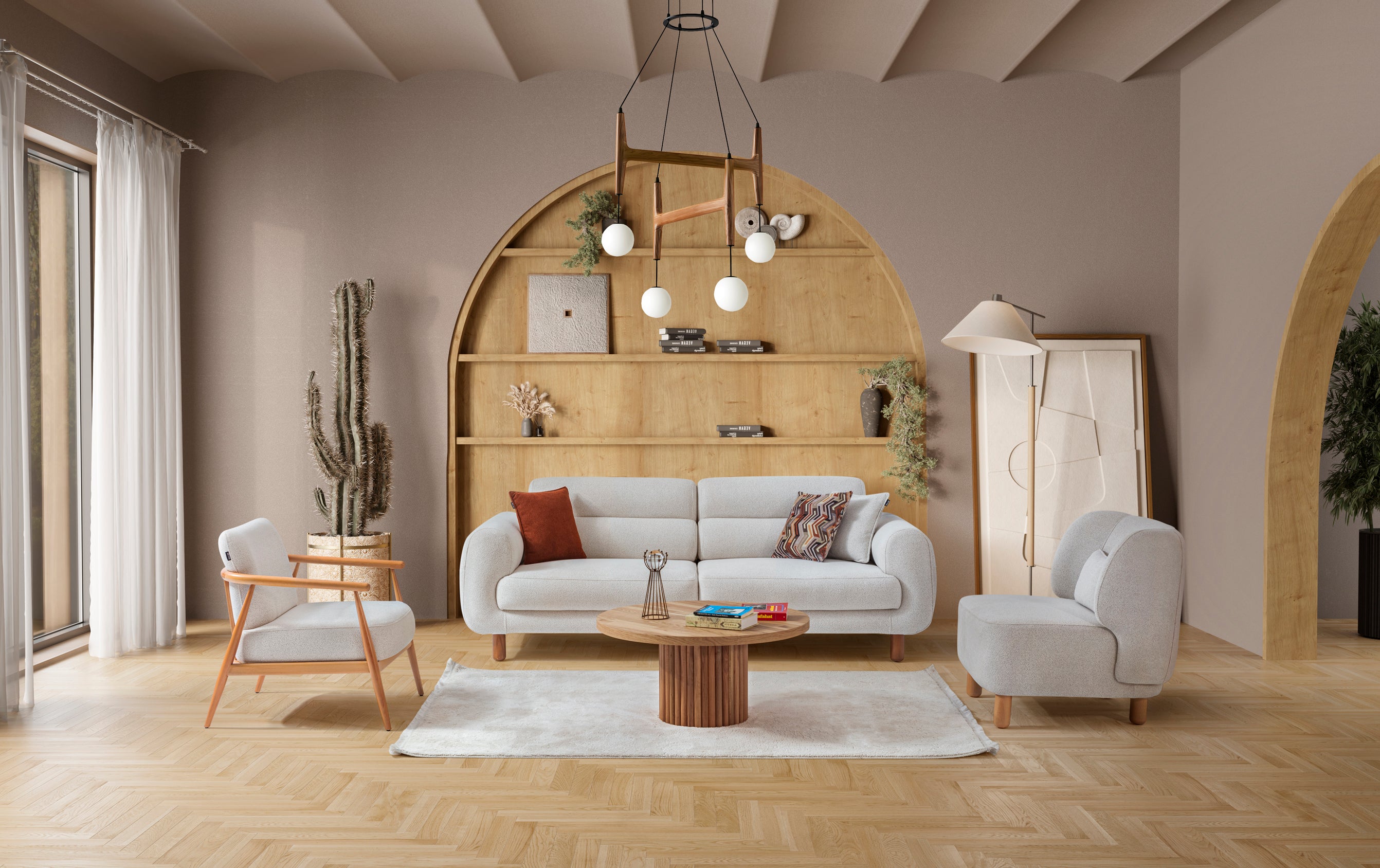 Modern yaşam tarzına uyum sağlayan koltuk takımları, yemek masaları, TV üniteleri, sehpalar ve yatak odası grupları; hem estetik hem de fonksiyonel çözümler sunar. Doğadan ilham alan sakin tonlar, minimal formlarla birleşerek göz yormayan, ferah ve çağdaş mekanlar oluşturmanıza yardımcı olur.